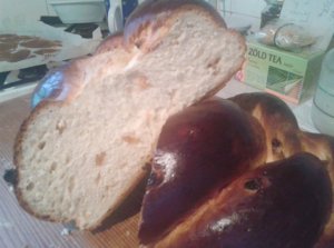 Hát ezen a hosszú Pünkösdi hétvégén volt alkalmam mindkettőhöz, és határozottan állítom, hogy a gyakorlatokat SIKERESNEK titulálom mindkét esetben: Bélzet első osztályú állagra és puhaságra is a kalácsnál, kenyérnél pedig igazi falusi kenyér született, érződik a kovász mind az illatán, mind az ízén. A Kalácsot csak megmutatom itt, bár nem erről szól e bejegyzés, viszont mondhatni együtt készültek, nem szeretném kihagyni a posztból. Receptet ehhez nem írok, mert egy új receptet szerettem volna kipróbálni, de valami nem stimmelt, a folyadék rengeteg volt, és plusz lisztezni kellett… mégis tökéletes lett. Kalácsreceptnél megmaradok a jó bevált úton: Lásd: Péksütemény-kategória: “Első fonott kalácsom”. 🙂