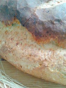 Az én ünnepi kenyerem egy másmilyen kenyér lett, mint az itt eddig bejegyzett kenyereim. A liszt és víz -kovász alap benne található, de Ma szerettem volna Olyan Kenyeret sütni, és kipróbálni, amilyet a Mama még annó sütött. Az eredmény pedig: igen, a szokás hatalma – a megszokott falusi ízvilág, kissé sültebb ízű kenyér héj, és nagyon finom puha belső. A képeken látható két szeletet, és a csücsköt azonnal meg is ettem. Olyan lett. Olyan… 🙂