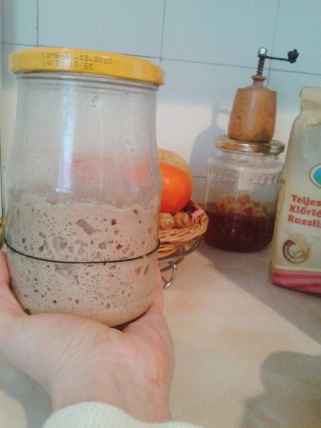 - kb. 130 g aktív kovász (nekem teljeskiőrlésű rozskovászom van)