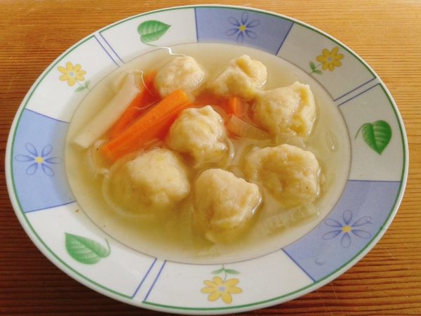 A krumplit meghámoztam, feldaraboltam és megfőztem sós vízben, majd leöntöttem a vizet épphogy egy kicsit hagyva alatta. Összetörtem így a krumplit, és még pici sót hozzáadva liszttel összegyúrtam, annyival amennyit felvesz a krumpli. Lisztezett kézzel gombócokat készítek belőle. Előzőleg egy jó zöldséglevest főztem jó hagymásan, majd mikor forrt már, és félpuhák voltak a zöldségek, ebbe a levesbe engedtem bele egyenként a gombócokat. Miután a gombócok megfőttek a levesben, tálalhatjuk is.