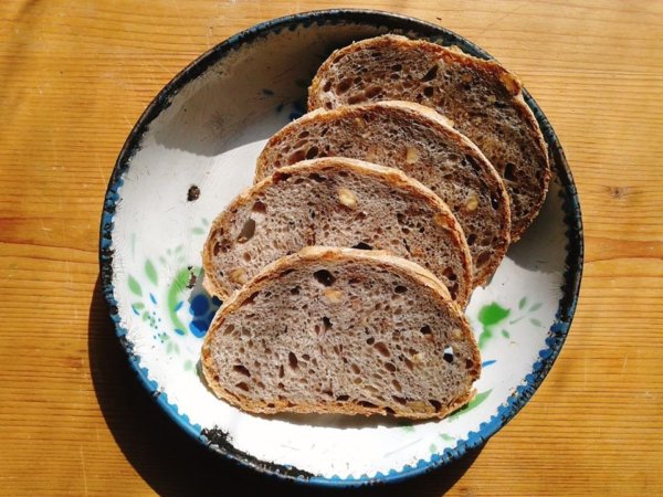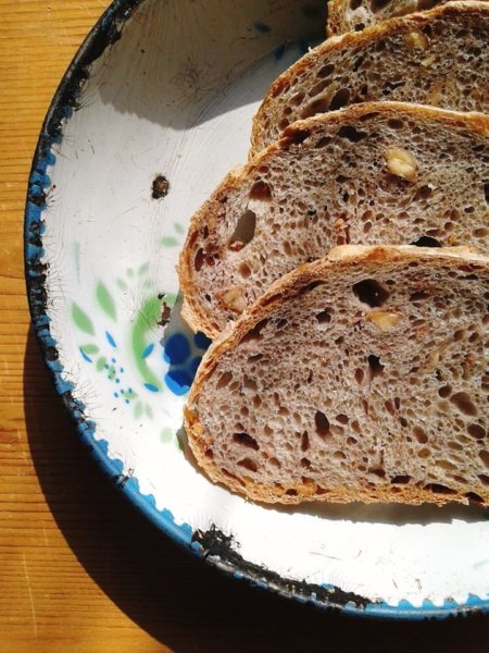 Diós-kovászos kenyér: (a szokásos, bevált arányokkal )